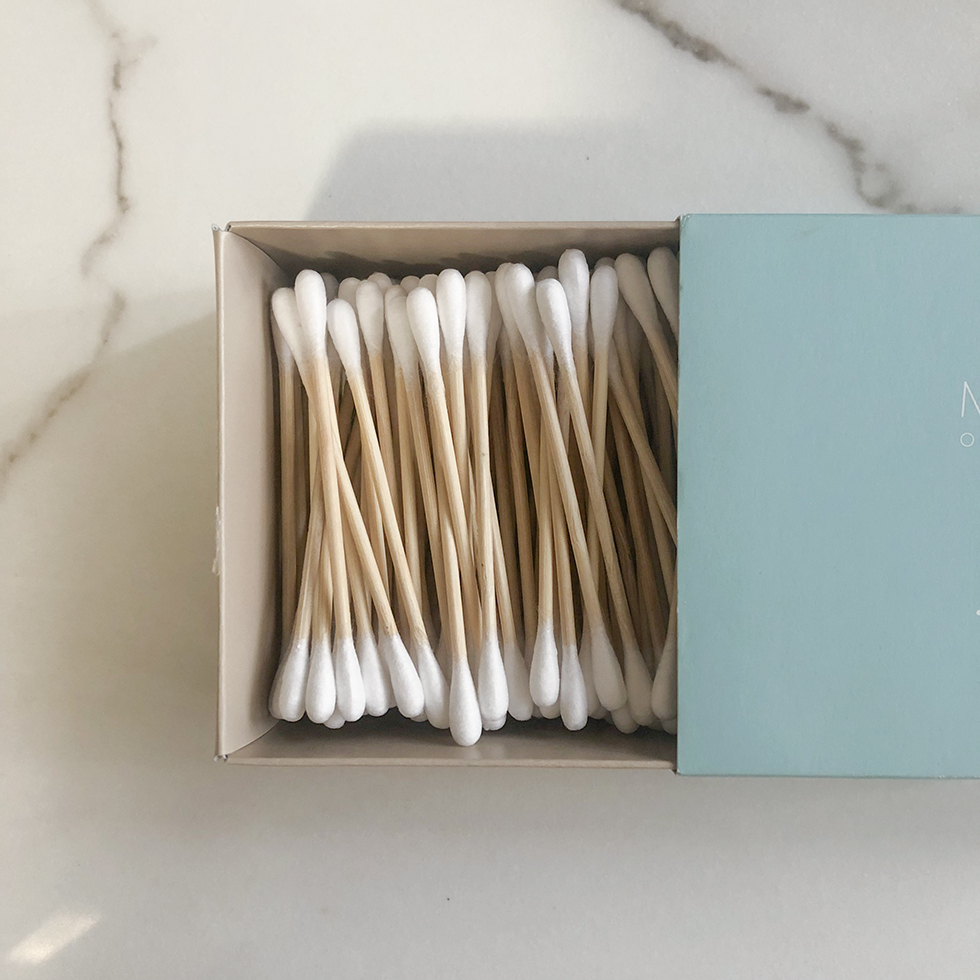 芯の部分に循環素材の竹を使用した、地球環境に優しい綿棒。