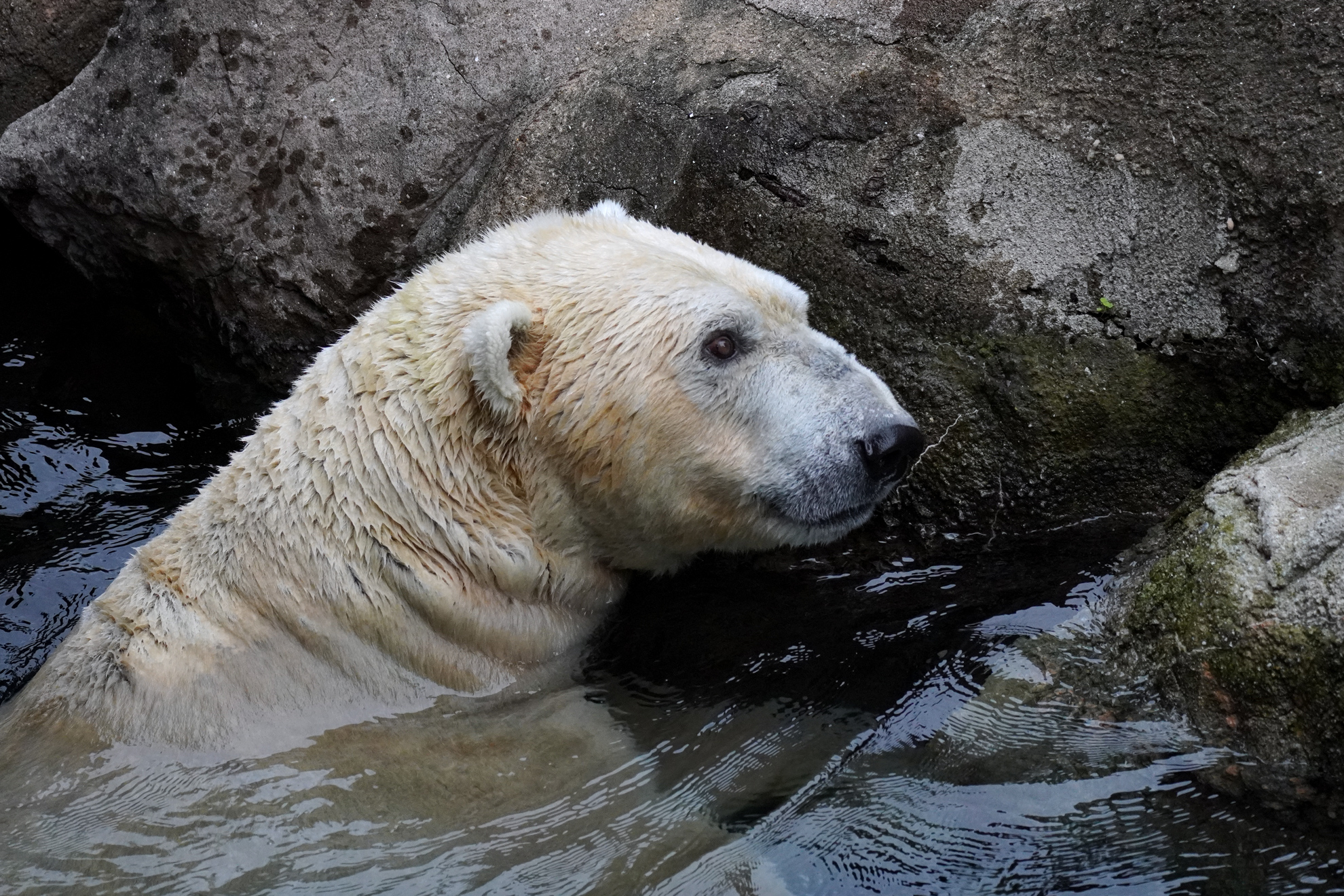 最後の年にも、お庭のお散歩を欠かさなかったジャンブイ。4月にはまさかの滝壺への飛び込みも!ふかふかのウッドチップの上で横になってのんびりしたり、いつもの水中を気持ちよさそうに泳いだり、目を細めながら小枝をうれしそうに齧ったり。ジャンブイと、ジャンブイを眺めるひとたちの間に流れる、穏やかな時間。ジャンブイのさりげない優しさは、傍で暮らすホッキョクグマにも、ひとにも、たぶんジャンブイからお魚をかっさらっていたカラスにも届いていたような、そんな気がします。